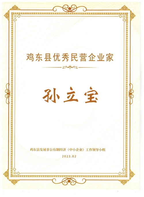 2月22日,在鸡东县发展非公有制经济(中小企业)工作领导小组授牌表彰了米乐网页版登录入口“鸡东县就业突出贡献优秀民营企业”“鸡东县投资突出贡献优秀民营企业”“鸡东县产值突出贡献优秀民营企业”“鸡东县社会突出贡献优秀民营企业”、总经理孙立宝获得“鸡东县优秀民营企业家”称号。