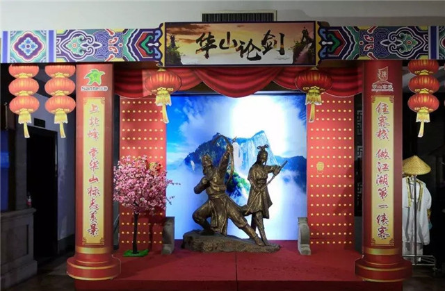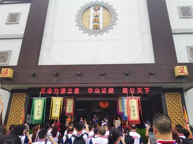待走近华山客栈,门口众侠士抱拳示意,并热情的送上欢迎词。