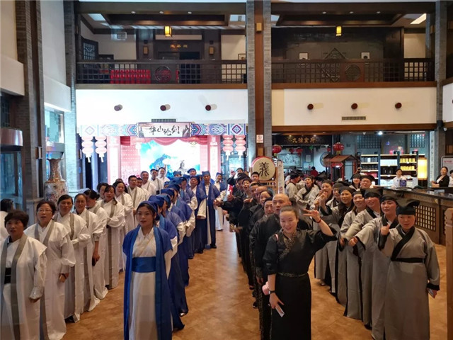 客栈大堂内,元动力百位大咖摇身一变,已化身为豪情万丈的武林人士。