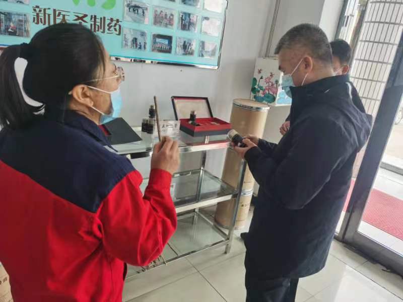 郭副市长一行参观了企业的发展情况,在与总经理孙立宝的深入交流中,认真听取了孙总关于企业重点项目建设、产品创新成果和发展规划的介绍,并着重询问了企业生产经营、中药材种植与深加工项目的进展等情况。郭副市长充分肯定了新医圣制药近年来的发展成绩,鼓励企业要借助当地优质中药材资源优势,在传统中药材加工的基础上,进一步延伸产业链。